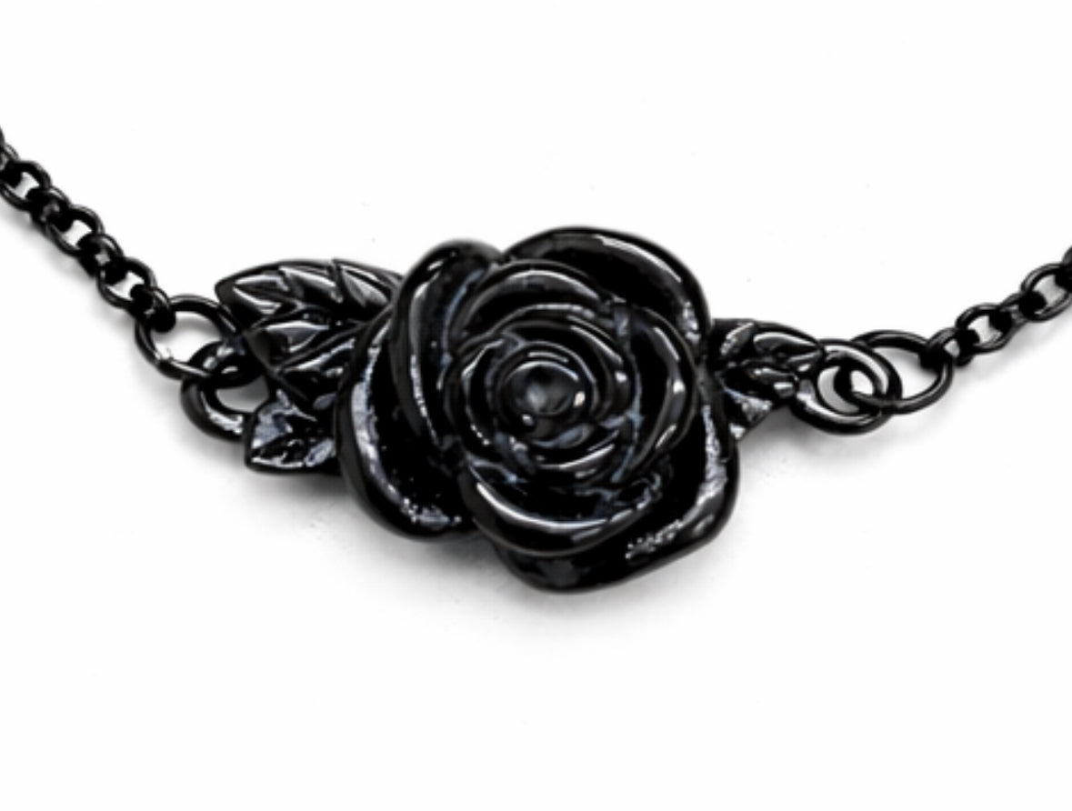 This bracelet is made of black stainless steel adjustable chain with a black rose charm which holds the ashes inside.