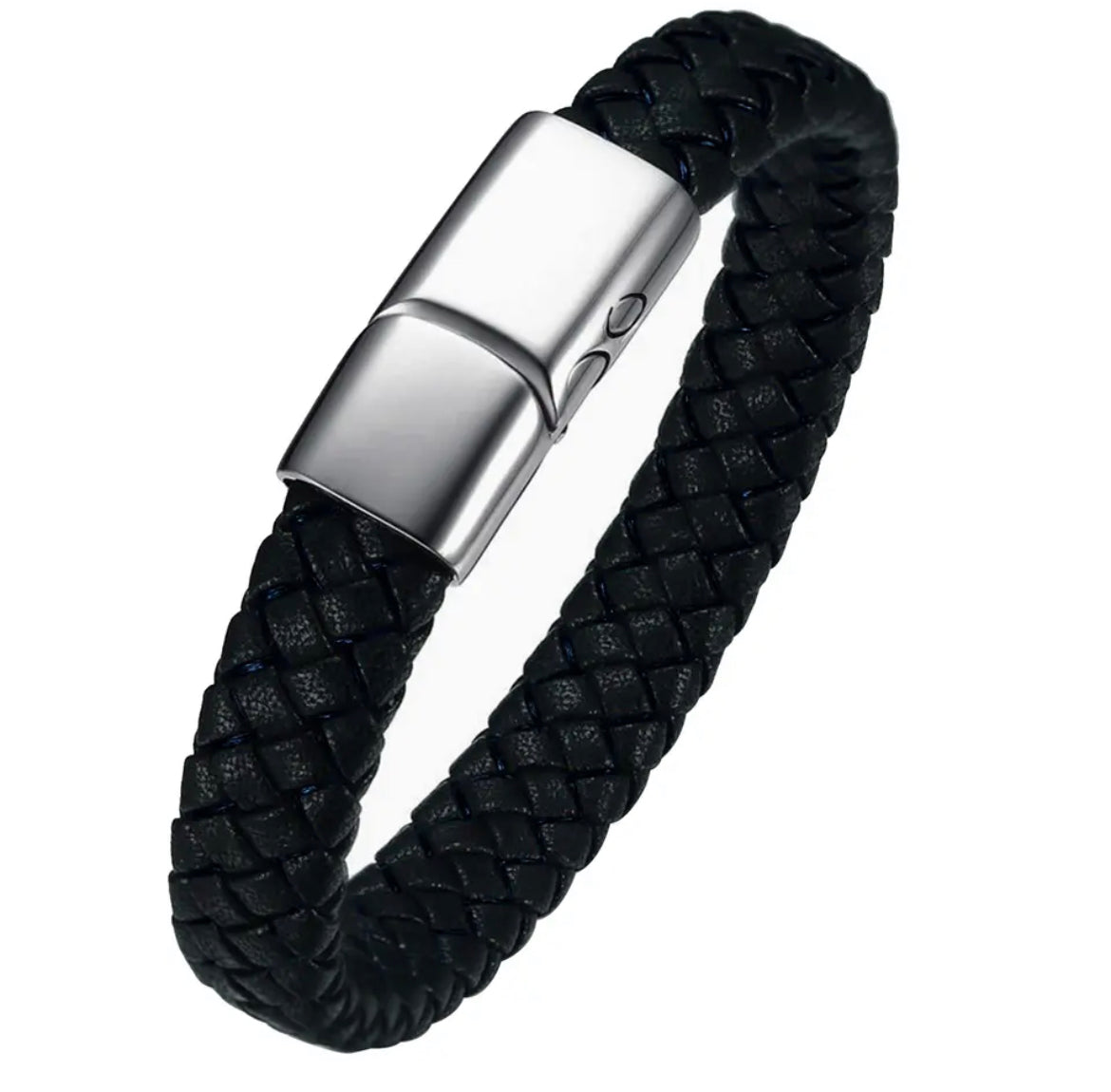 This bracelet is made of a braided leather with a highly polished stainless bar to hold the ashes, this bar can be engraved.