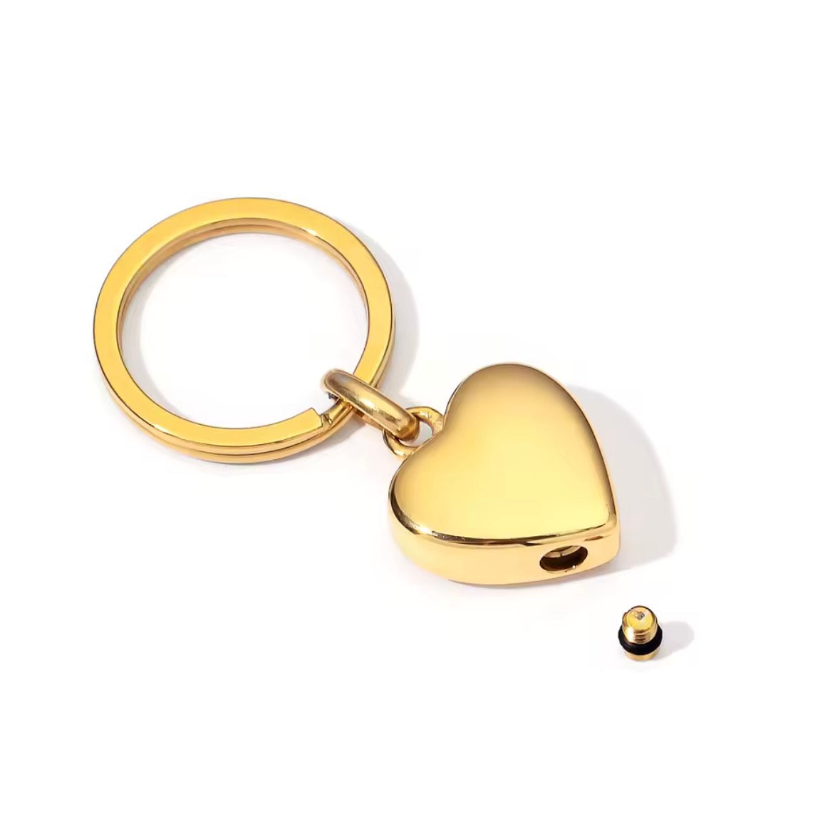 Gold or Silver Heart Keyring Cremation Urn with Optional Personalisation