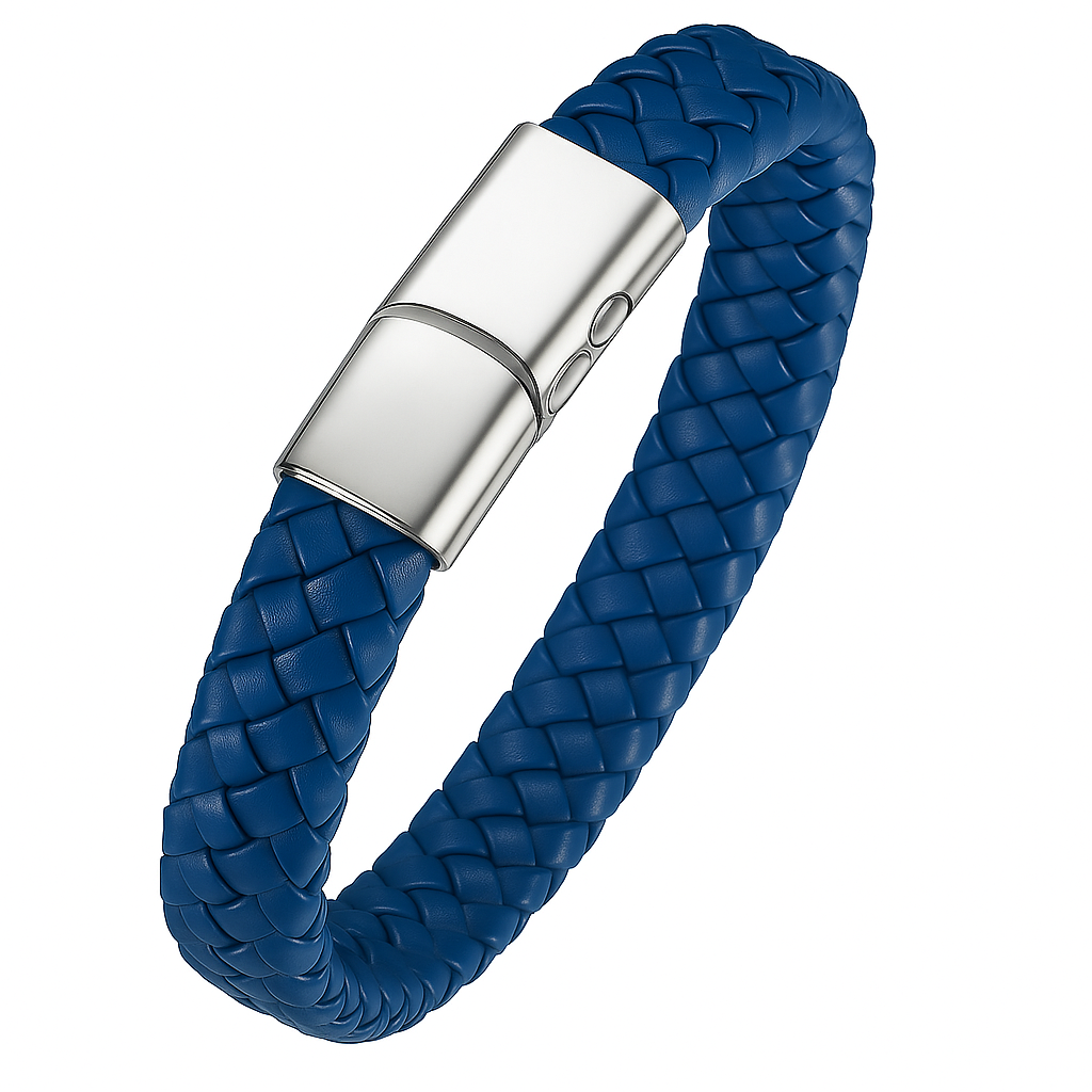 This bracelet is made of a braided leather with a highly polished stainless bar to hold the ashes, this bar can be engraved.