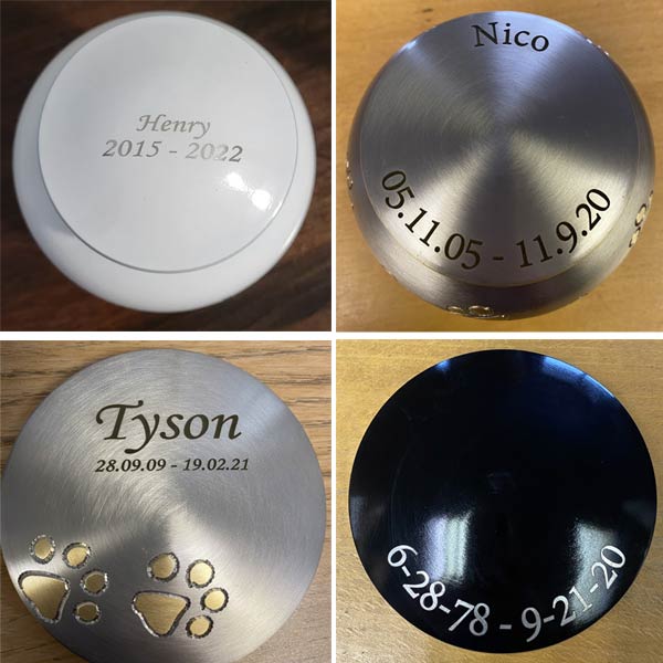 Your pet urn can be personalised on the lid with their name, dates or any short amount of text of your choosing (max 30 characters). Leave blank for no engraving / personalisation.