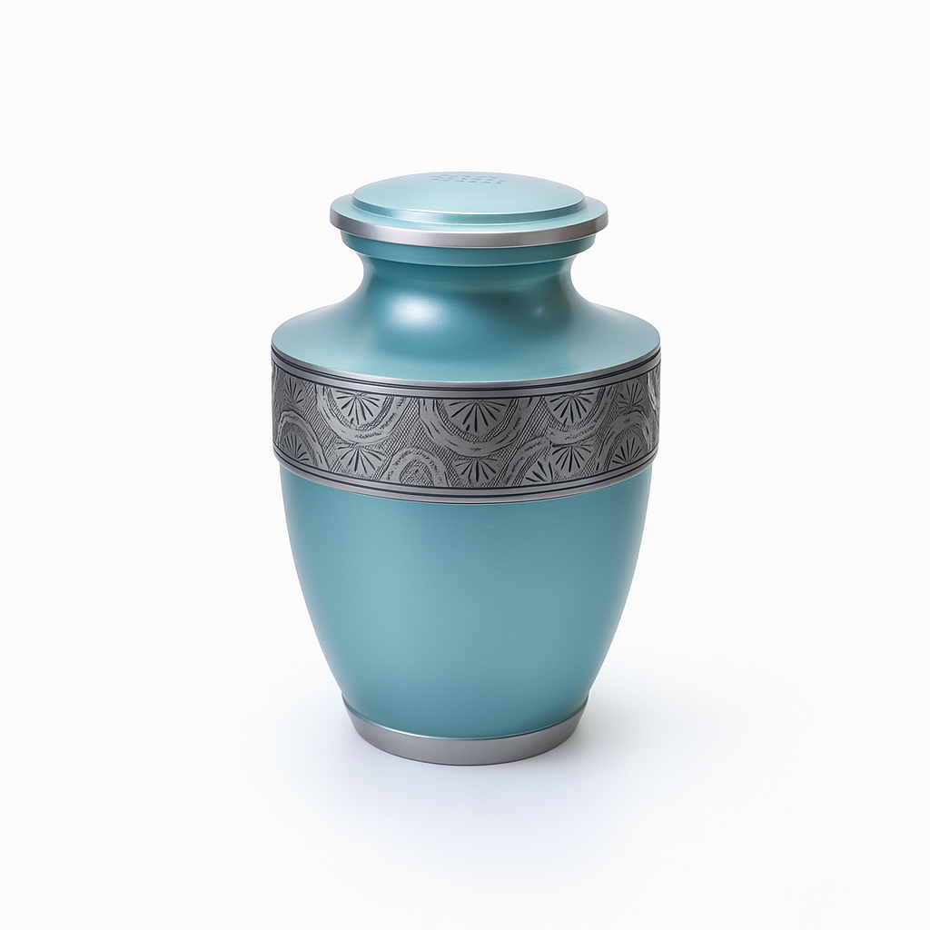 Pale Aqua and Silver Adult Urn with Optional Personalised Engraving